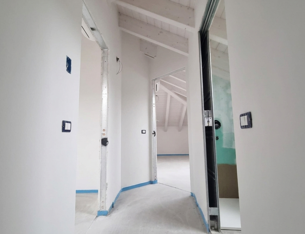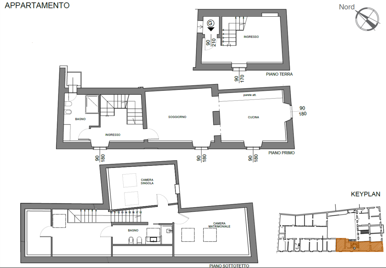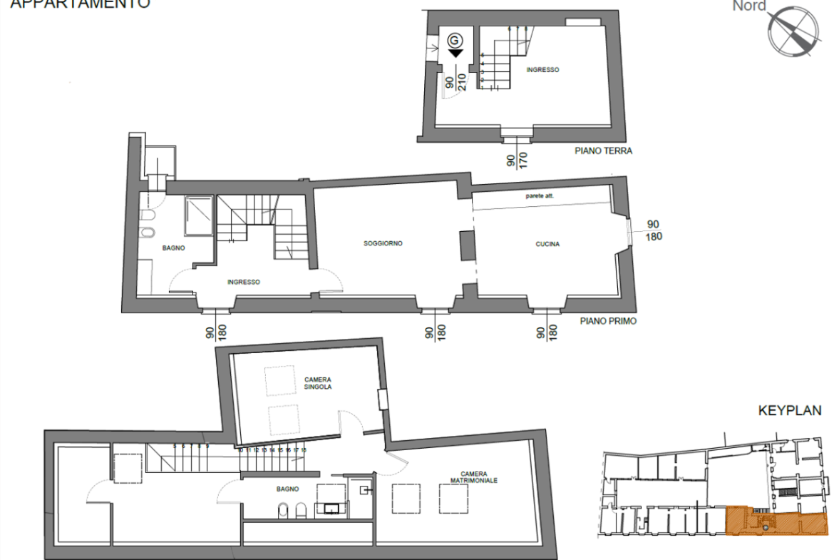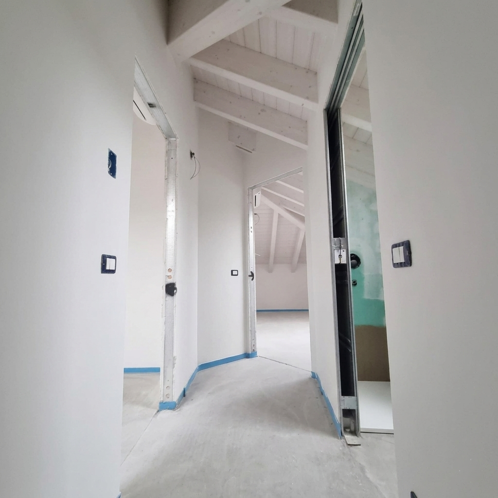 •Piano secondo: suggestiva mansarda con travi a vista con due camere, ulteriore locale ideale come guardaroba o studio, bagno e ripostiglio
